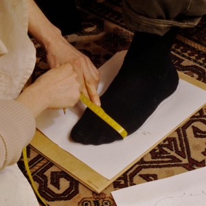 During the first visit the feet´s measurements are taken in two ways: sitting and standing – with and without the pressure of the body weight. Particular details of the feet are taken notes of and esthetic preferences of the customer are talked about: Whether the toe shape should be rather fine and elegant, square or rounder for a casual style. For ladies the heel hight is a relevant question at this point. The model of the definite pair and the leather choice are defined. About one hour of time should be calculated for the first fitting.