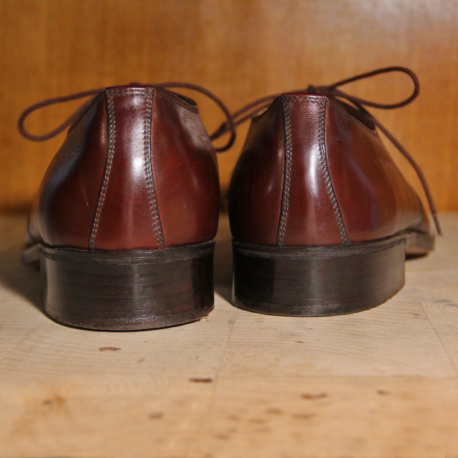 The rough lasts are ordered and worked to the measurements of the customer. Successively, a test pair is made. Second choice materials are used for the test pair and the soles are just stuck on. It is a proper pair of shoes though, that has to be worn by the customer for at least for two weeks.